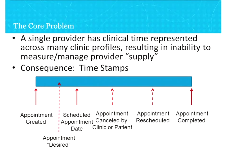 VistA scheduling is currently a “blue screen roll and scroll” system in which entry level employees tend to rush through the default entries, according to Mike Davies, director of the Access Clinic Administration Program at the Veterans Health Administration. "We knew in the early 2000s that the desired date for appointments was only about 60 percent reliable."