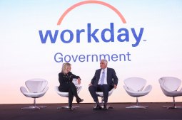 Lynn Martin, group VP and GM of Workday Government, interviews Aneel Bhusri, co-founder, CEO and chair of Workday, at the Workday Federal Forum in Washington, D.C., on April 28, 2026. (Scoop News Group photo)