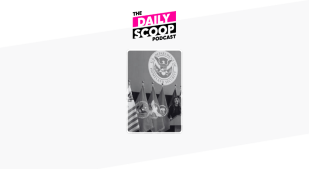 Kristi Noem, secretary of the U.S. Department of Homeland Security, speaks about REAL ID in a video playing at a Transportation Security Administration checkpoint at Raleigh-Durham International Airport on Dec. 27, 2025. (Photo by Al Drago/Getty Images)