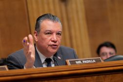Sen. Alex Padilla, D-Calif., speaks during the Subcommittee on Border Security and Immigration hearing at the U.S. Capitol on Feb. 10, 2026 in Washington, D.C. (Photo by Heather Diehl/Getty Images)