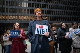 Federal employees rally in support of their jobs outside of the Kluczynski Federal Building on March 19, 2025, in Chicago. The rally was organized by the National Treasury Employees Union to voice concerns about the mass firing of federal workers by the Department of Government Efficiency (DOGE). (Photo by Scott Olson/Getty Images)