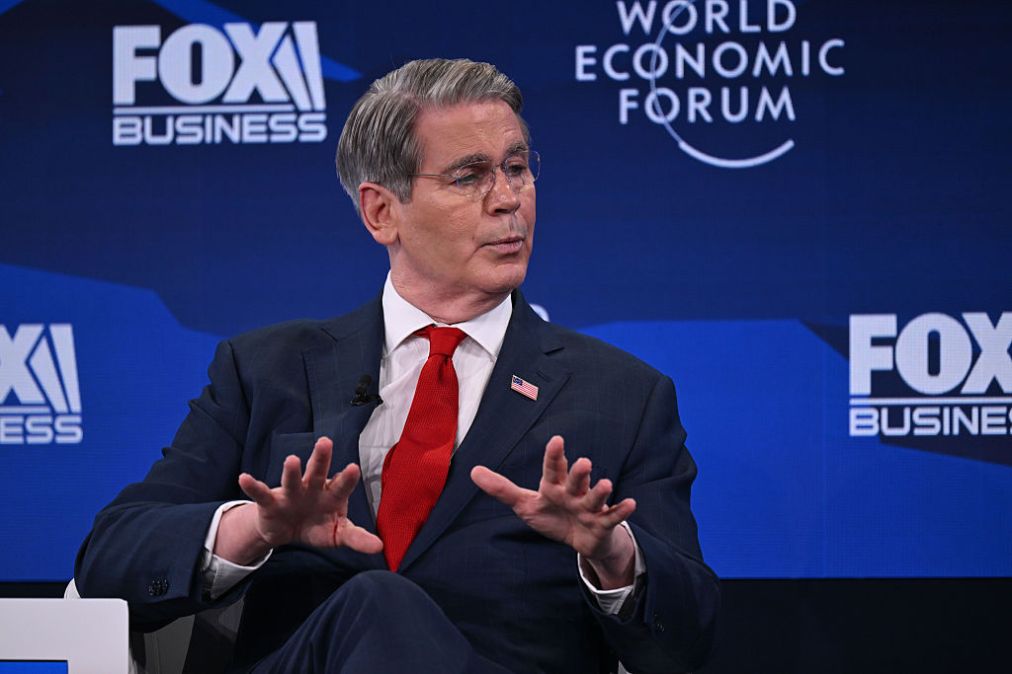 Treasury Secretary Scott Bessent speaks at the 56th World Economic Forum (WEF) Annual Meeting in Davos, Switzerland on Jan. 20, 2026. (Photo by Harun Ozalp/Anadolu via Getty Images)