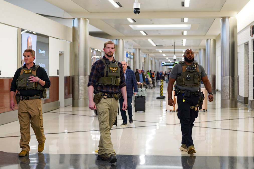 A union representative covering the Chicago O’Hare International Airport said ICE agents were stationed at exits and in baggage areas. At John F. Kennedy International Airport in New York, a union representative said ICE agents are primarily standing around the terminals.