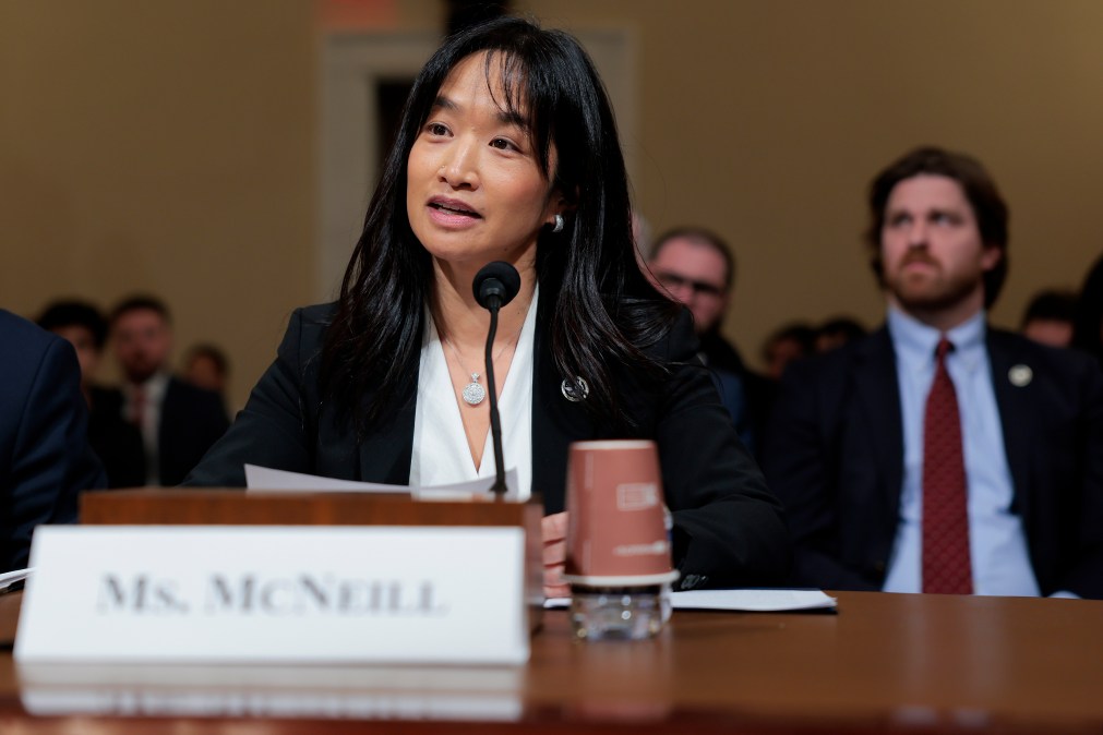 Ha Nguyen McNeill, senior official performing the duties of the administrator of the Transportation Security Administration, testifies during the DHS oversight hearing in the Cannon House office building on Jan. 21, 2026 in Washington, DC. (Photo by Heather Diehl/Getty Images)