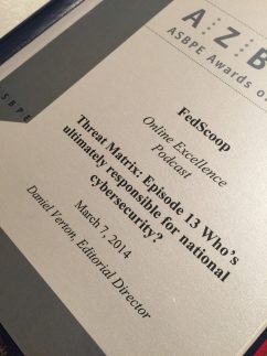 Editorial Director Dan Verton was recognized for his Threat Matrix podcast series with a national silver award for his investigation into who is ultimately responsible for national cybersecurity. That episode featured commentary by Phyllis Schneck, the deputy undersecretary for cybersecurity at the Department of Homeland Security, and Patrick Gallagher, director of the National Institute of Standards and Technology.