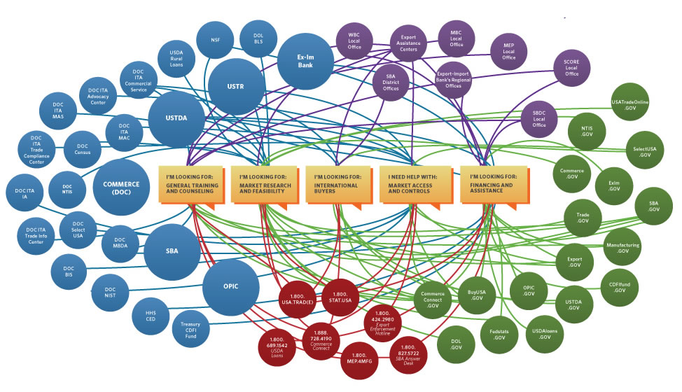 Under the proposal, Obama would combine the functions and staff of six trade- and commerce-related agencies and offices: the Small Business Administration, the Office of the U.S. Trade Representative, the Export-Import Bank, the Overseas Private Investment Corporation and the Trade and Development Agency.