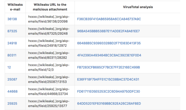 Some of the leaked email conversations published by WikiLeaks — which are still up on the site — contain malware-ridden hyperlinks, attachments and other downloads. Listed email addresses by WikiLeaks that previously received the malware could have been the broad target of a spam campaign or a more specific data extraction operation, Bontchev writes.